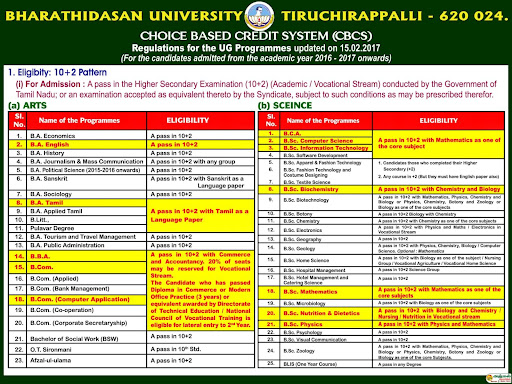 - Students from other states will be considered for admission, only if they produce eligibility certificate from Bharathidasan University.