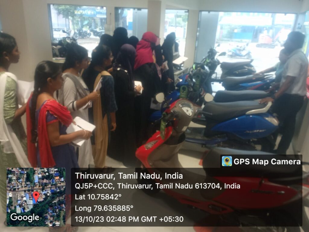 PG & Research Department of Commerce & Computer Application went to Field Visit at Honda Showroom on 13.10.2023 at Tiruvarur