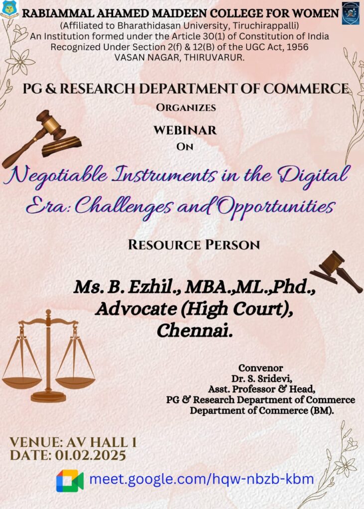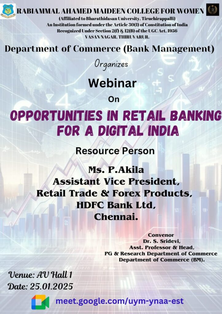 The Department of Commerce was established in 1999 with a Bachelor’s Degree Programme. Since 2000, it has been elevated as a Research Department offering a Ph.D Programme in Commerce.