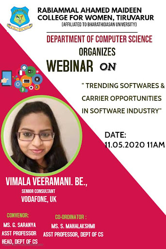 Department offers Computer Science focusing Conveniences and Proficiency in advanced Computer Technology thereby promotes Research,Information Technology enhancing the Student Knowledge by Organizing & Participating in Technical Program for providing students with the tools to become Productive,Participating Global Citizenzs & Life Long Learners.Computer Application aspiring to amplify the students to furnish required Proficiency & Requisite Skills to get Enriching LiveHood in the Ever-Changing World of IT.