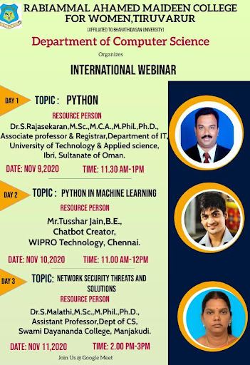 | MS.M.LAKSHMIPRIYA | M.C.A, M.Phil.,NET., | ASSISTANT PROFESSOR | PYTHON PROGRAMMING | lakshmipriya@gmail.com |