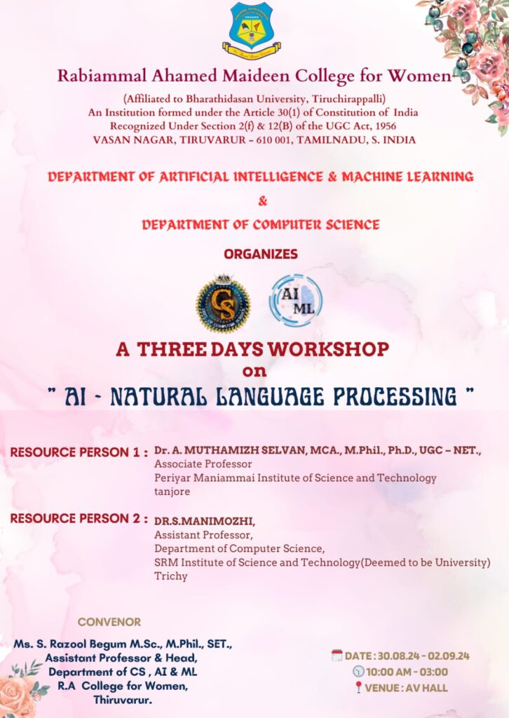 We the Department of computer science, Information Technology and Computer Applications ,Artificial Intelligence & Machine Learning.