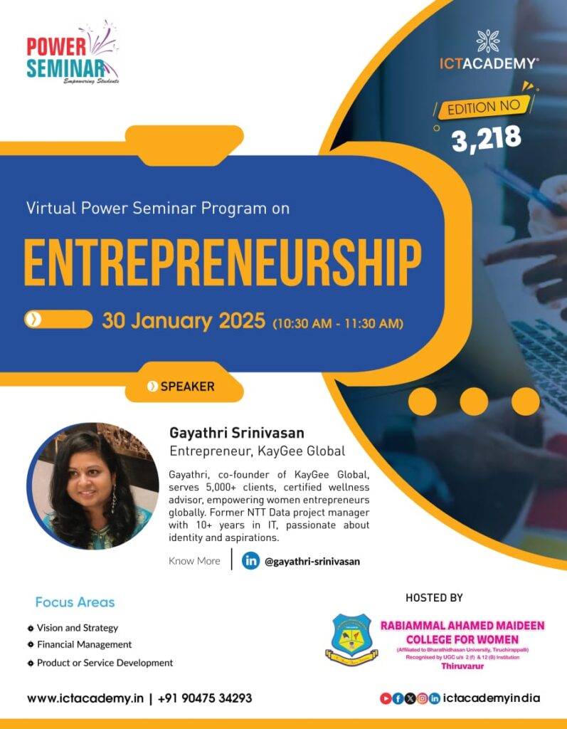 Resource Person Seminar on From Engineering to Fitness: A Journey shaped by passion Tech(30.8.2023)