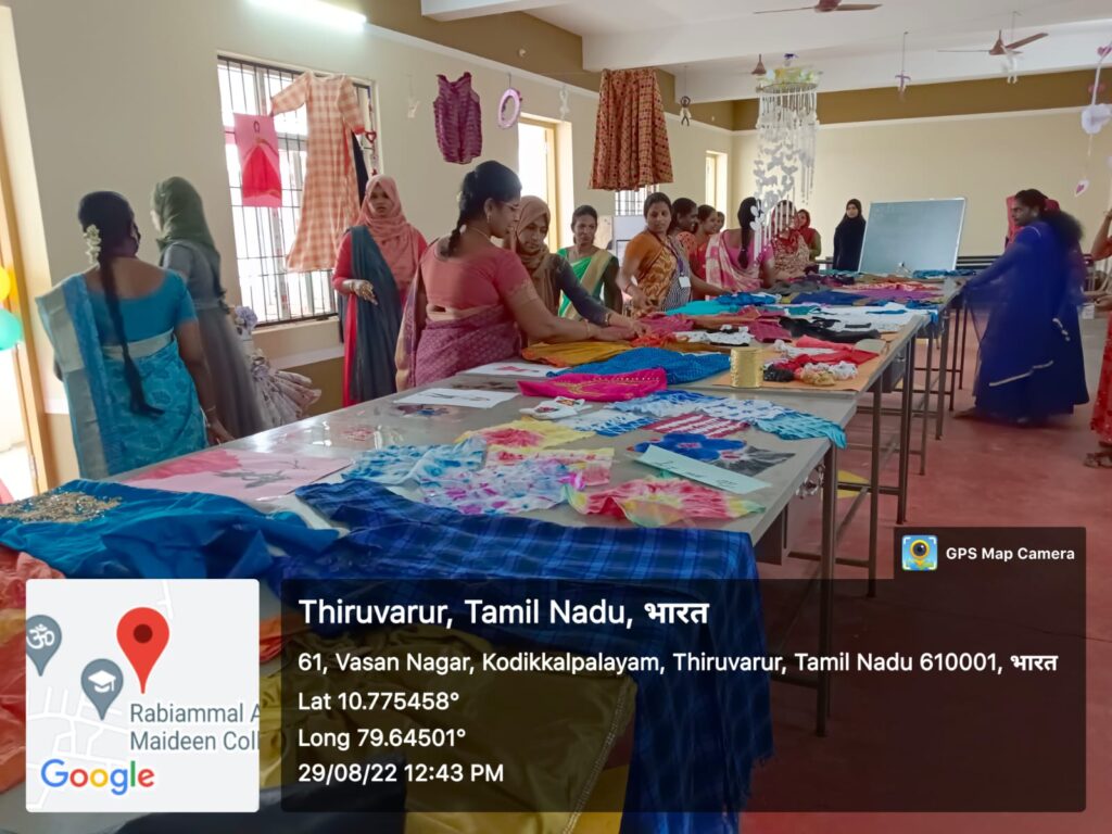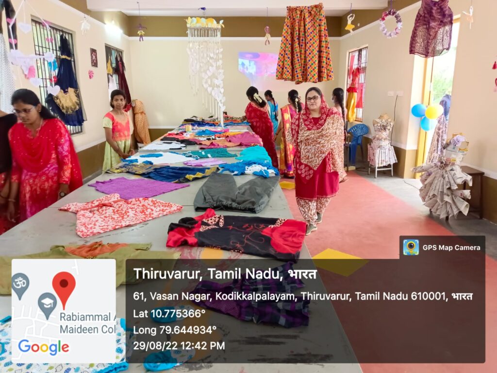 In our Rabiammal Ahamed Maideen College we started Fashion Technology at the year of 2019, it aims to develop the needs & expectation of the fashion/garment industry and business, which enable the graduate to design and manufacturing crocheting and knitting. The Fashion Technology department also offer need-based continuing education program/courses for the benefit of the students. Our goal is to give more priority to the students and women around the Thiruvarur district, it motivates them to become better entrepreneurs. To achieve this goal, we are giving vocational training facilities to the students. The students who have study here shown their talent in many programs.