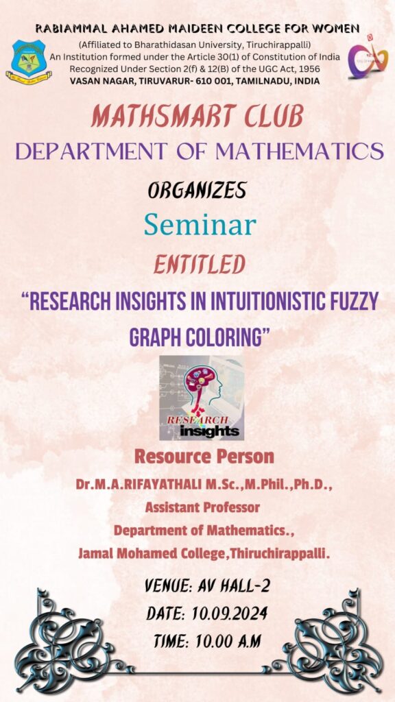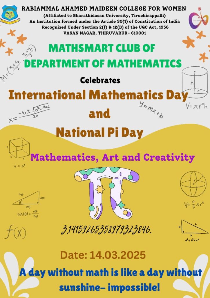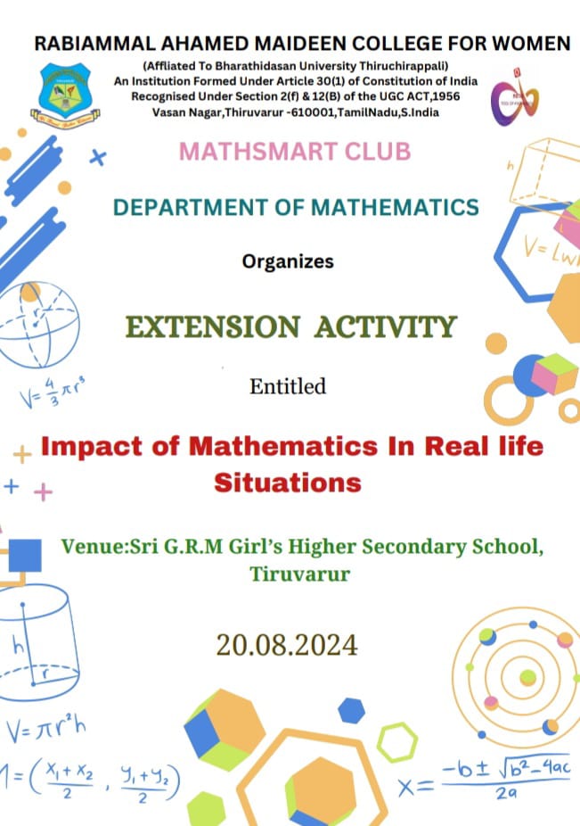 The department of mathematics was established in the academic year 2000- 2001. The department got upgraded as post graduate department by starting M.Sc.,(Mathematics) in 2012-2013. The department infuse good research culture and motivates the students for skill development.