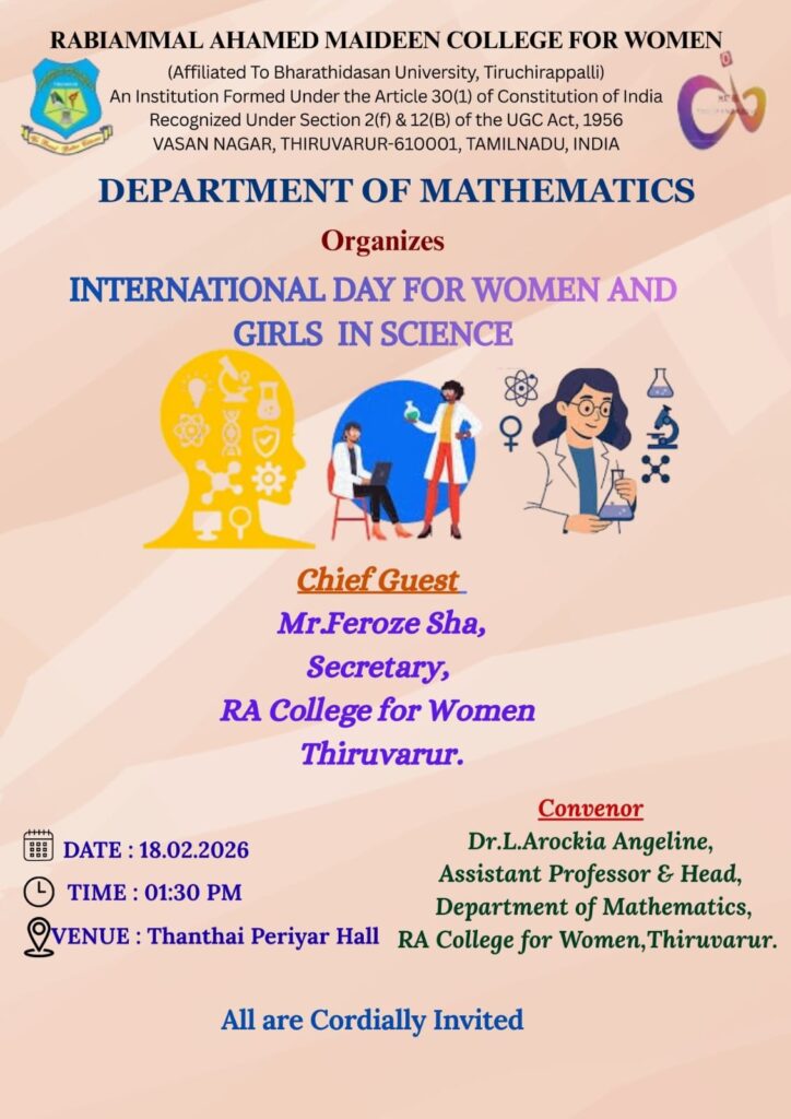 The department of mathematics was established in the academic year 2000- 2001. The department got upgraded as post graduate department by starting M.Sc.,(Mathematics) in 2012-2013. The department infuse good research culture and motivates the students for skill development.