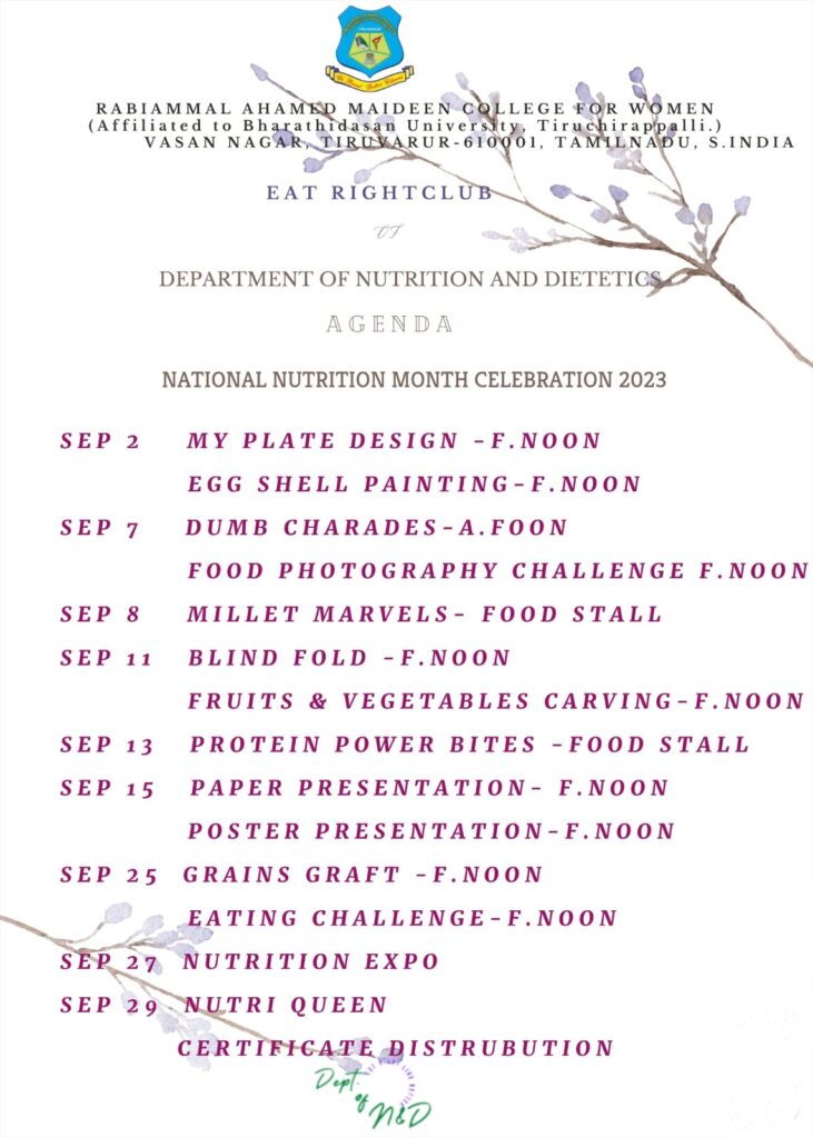 RAC’s Department of Nutrition & Dietetics was established in 2017 as the Department of Nutrition and Dietetics under the Bharathidasan university. Since the inception, the Department has played a vital role in establishing Nutrition as an academic subject and encouraging public interest in the food we eat and its effect on our health. The Department of Nutrition & Dietetics is at the forefront in teaching Food and Nutritional Science related subjects, with a reputation built over for a period of 5 years and consistently enforcing a niche in this arena of study under the roof of the Bharathidasan University.