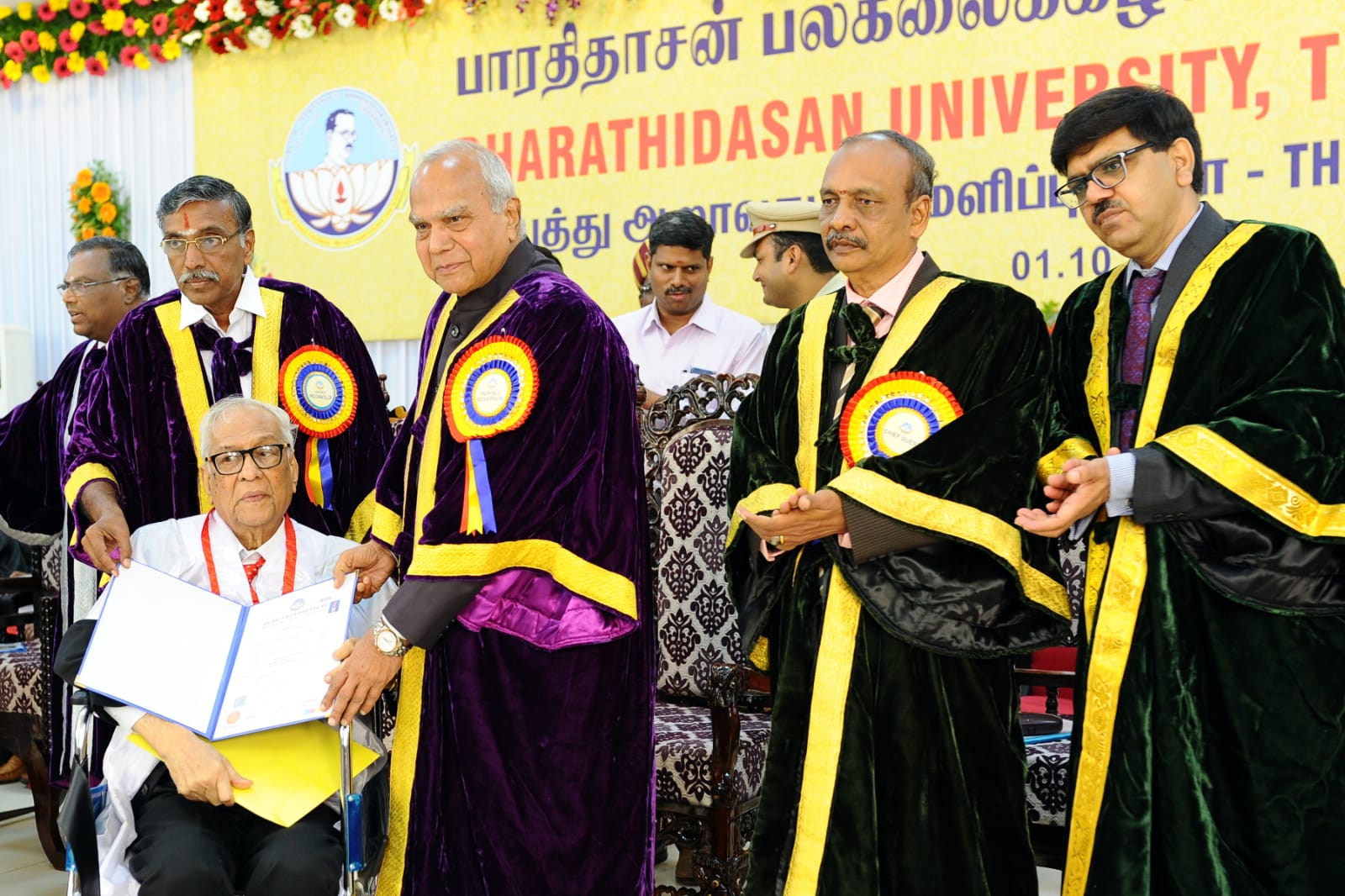 திருச்சியில் 2019-ல் நடைபெற்ற பட்டமளிப்பு விழாவில் பாரதிதாசன் பல்கலைக்கழக வேந்தர், ஆளுநர் பன்வாரிலால் புரோகித், அவர்களால் நம் கல்லூரியின் முன்னால் செயலர் Dr S.M மிஸ்கீன் அவர்களுக்கு முனைவர்(Ph.D.) பட்டம் கொடுக்கப்பட்டது.