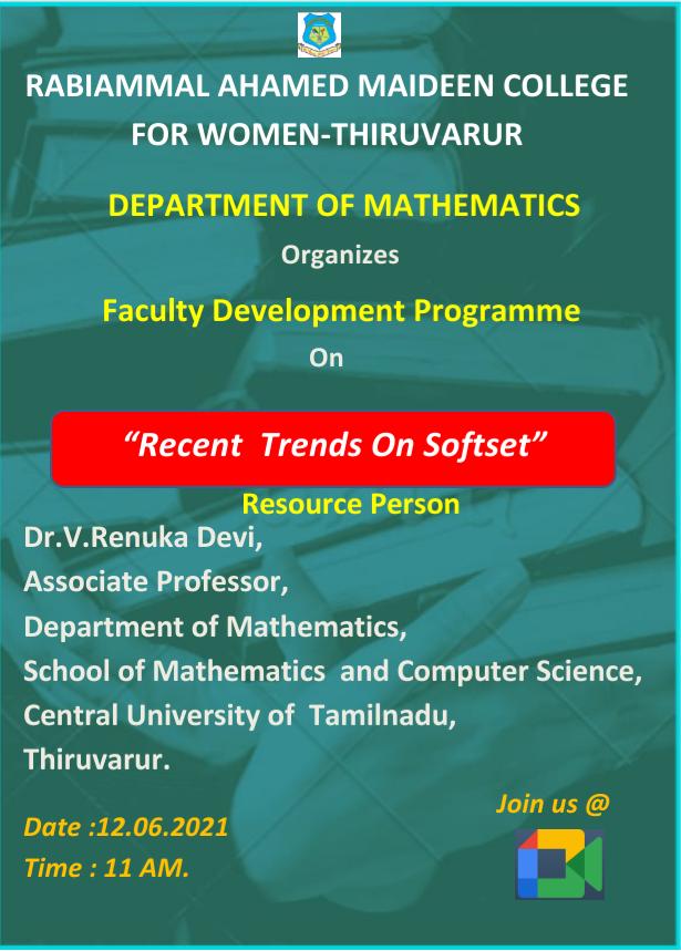 The department of mathematics was established in the academic year 2000- 2001. The department got upgraded as post graduate department by starting M.Sc.,(Mathematics) in 2012-2013. The department infuse good research culture and motivates the students for skill development.